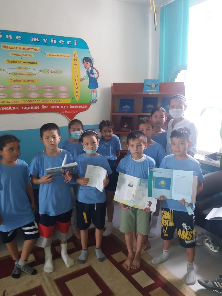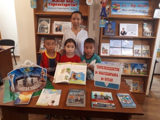 №13 балалар кітапханасы ҚР Тәуелсіздігінің 30 жылдығына орай «Парасат жолы» жобасы аясында №11 мектеп лицейдің жанынан құрылған «Ақ көгершін» күндізгі тынығу лагерінде «Мемлекеттік рәміздер - ел мәртебесі» атты кітап көрмесі ұйымдастырылып оқырман балаларға насихатталды.