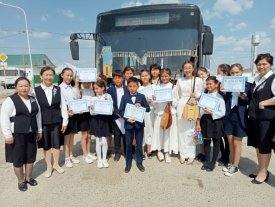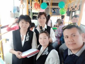 «Қазанғап» атындағы музыкалық колледж студенттеріне құралған "Алтын адам" тобы, Досмағанбетова Дариға "Бипыл"әнін орындап жолаушыларға көтеріңкі көңіл күй сыйлады.