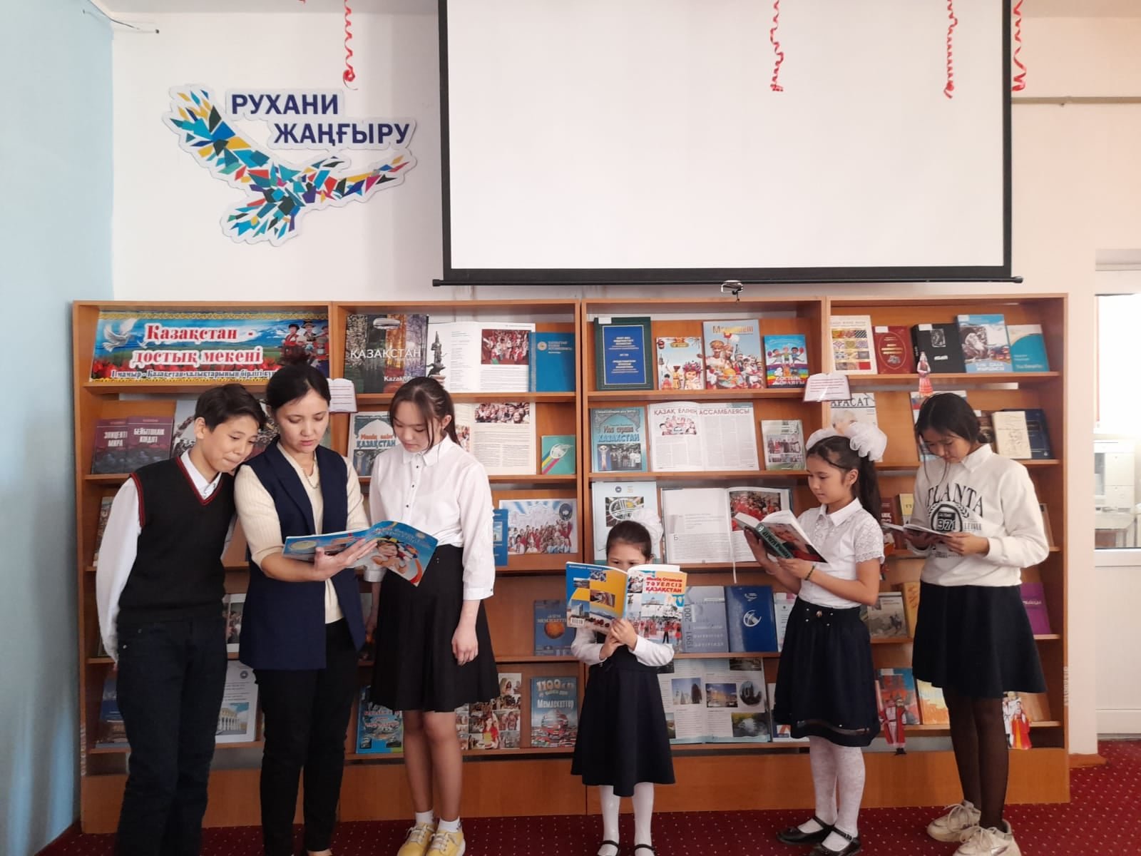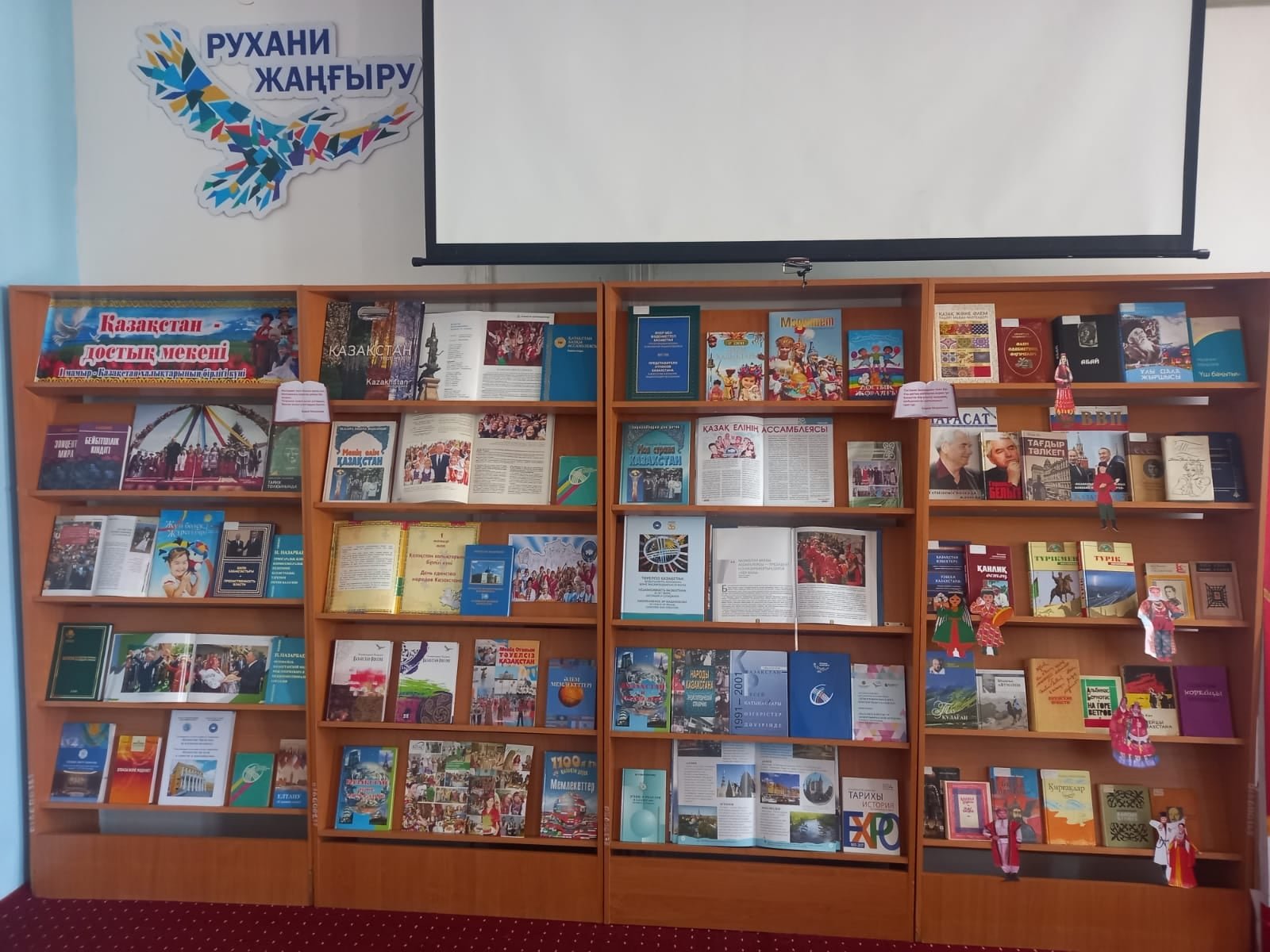 Шолу барысында кітапханашы Кенжебаева Мақпал шараға қатысушыларға көрмеге қойылған «Қазақстан:бірлік пен әр алуандық жолында», «Қазақстан және әлем елдері» атты кітап-альбомды, О.Жанайдаровтың «Менің елім Қазақстан» балалар энциклопедиясын, « Этнос и религия в Казахстане: история и судьбы» ,«Қазақстан және әлем елдері» атты кітаптарды және де әр ұлт өкілдерінің тарихын, салт-дәстүрін, ұлттық дастархан мәзірін дәріптейтін басылымдар беттерінде жарық көрген мақалаларды таныстырып, насихаттады.