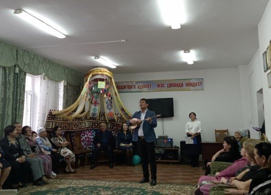 Шарада Облыстық Ардагерлер кеңесінің төрағасы С.Ә.Дүйсенбаев алғыс сөз сөйледі. Мәдениет Үйі жанынан құрылған «Бастаңғы» әжелер ансамблі халық әні "Дударай", «Балқадиша» әндерін және «Ғибрат» жыр терме үйірмесінің жетекшісі М.Маханбетжанов «Сырғаның сыңары», «Көк көбелек» әнін, Қазанғап атындағы музыкалық жоғарғы колледжі студенттері Д.Ақәділов, Е.Кенжебай «Саған ғашық», «Бір ел болса» әндерін орындап, ардагерлердің ықыласына бөленді. Кітап көрмесі ұйымдастырылып, әдебиеттерге шолу жасалды.
