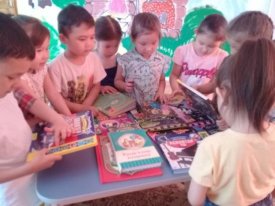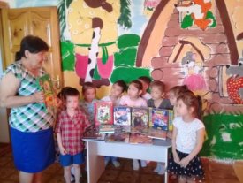 А.С.Пушкин атындағы орталық кітапхана «Нұр Әлемі» балабақшасының бүлдіршіндеріне «Балалық балғын шаққа саяхат» атты көшпелі кітап көрмесін ұсынып, таныстырды. Балалар кітап көрмесіне қойылған «Дауысқа құлақ асайық» атты сериядан шыққан: «Аспаптар үні», «Орман үні», «Қуыр – қуыр, қуырмаш» ,«Ғажап деректер» сериясы бойынша жарық көрген балаларға арналған танымдық энциклопедиялар : «Музыка,би, драма », «Мультфильм кейіпкерлері», «Фестивальдар», «Бүлдіршіндерге арналған әндер», «Менің Отаным Тәуелсіз Қазақстан», Т.Нұрмағанбетовтың «Қош бол, ата» , «Даналық әліппесі нұсқаулық» және т.б. көптеген әдебиеттермен қызыға танысып, өз ара ойларымен бөлісті.
