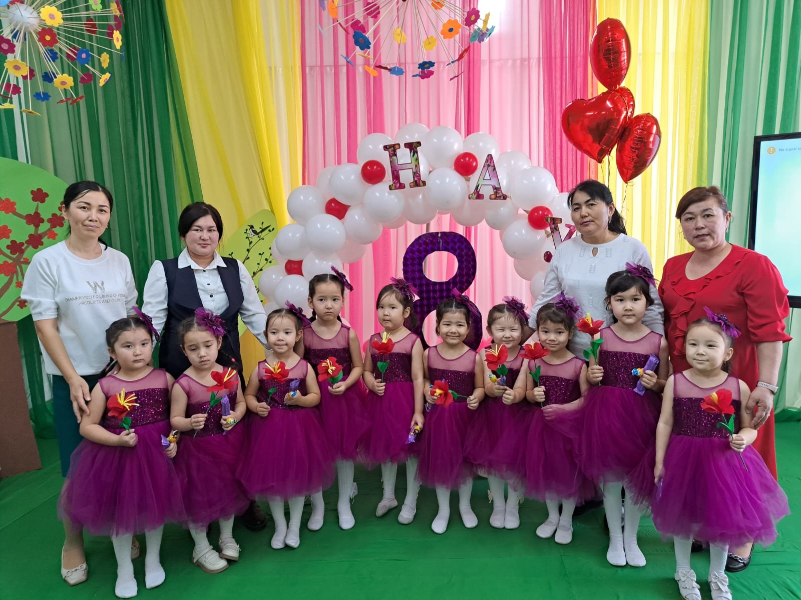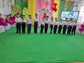Балабақша бүлдіршіндері ұл - балалар өз аналарымен «Ақ жаулық» биіне билеп, хормен барлығы «Анашым» әнін орындады.