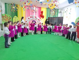 Әлемнің жарығын сыйлаған аналардың мерекесі көктем ханшайымының келуімен ашылып, балабақша бүлдіршіндері «Аяулы Анашым» әнін хор мен айтып, ұл – қыздарымыз «Көңілді би» биіне бар ықыласымен билеп өз өнерлерін көрсетті.