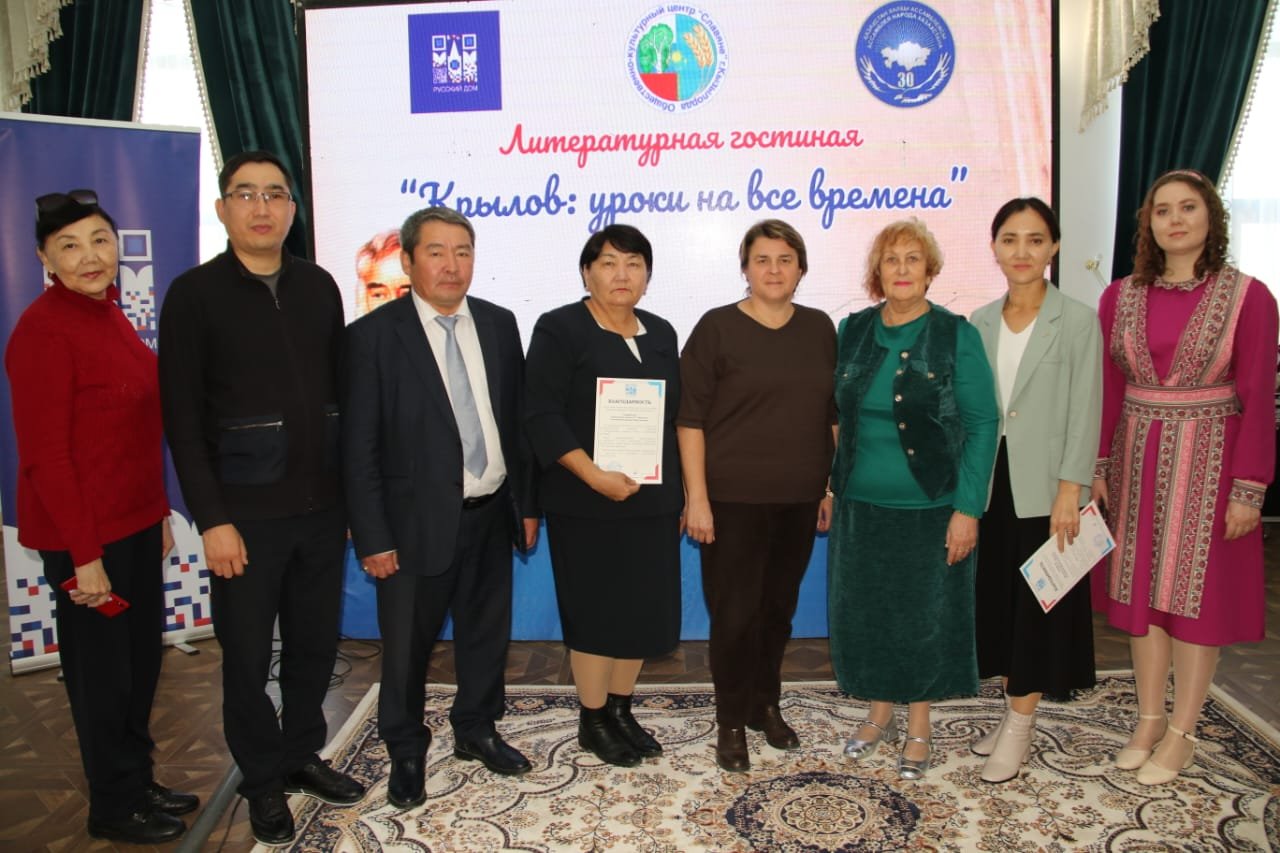 Қызылорда облысының Достық үйінде Славяне этно-мәдени бірлестігінің ұйымдастыруымен өткізілген «Крылов: уроки на все времена» атты әдеби қонақжайға А.С.Пушкин атындағы орталық кітапхана қызметкерлері қатысып, кітапхана қорындағы ұлы орыс мысалшысы И.А.Крыловтың шығармаларынан топтасқан «Мудрый баснописец» атты кітап көрмесін таныстырып, кеңінен насихаттады.