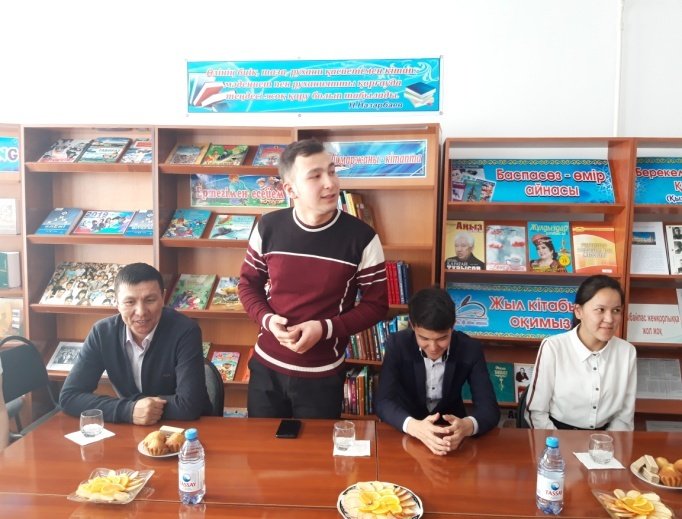 № 17 кітапханада «Жастар-мәңгілік ел болашағы» атты әдеби қонақжай өткізіліп, шараға ауыл жастары, белсенді оқырмандар қатысты. Қызылжарма жастар бірлестігінің мүшесі Жаңалық Талғат айтулы жыл қазақстандық жастарға мол мүмкіндік сыйлап, ел келешегі үшін зор міндеттер жүктейтіндігін айтып, пікірін ортаға салды.. Ауыл жастары жастар саясаты, білім алудағы зор мүмкіндіктер, өркениетті қоғамдағы жастар белсенділігімен бәсекеге қабілеттілік төңірегінде, өз ойларын ортаға салды.