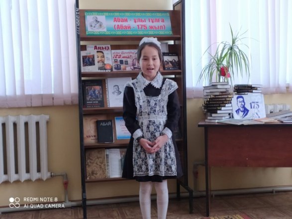 Қызылөзек ауылдық №10 кітапханада қазақ халқының ұлы ақыны, әдеби тілдің негізін салушы, аудармашы, сазгер тұлға Абай Құнанбаевқа 175 жыл толуына орай «Абай-ұлы тұлға» атты әдеби оқу өткізілді. Кітапхананың тұрақты оқырмандары А.Мұратбек Айзере, Б.Мұхамбетжан,І.Абуғали,М.Қуаныш ақынның «Жақсылық ұзақ тұрмайды», «Заман ақыр жастары», «Өлең-сөздің патшасы,сөз сарасы», «Қансонарда бүркітші шығады аңға» Берікболова Жанерке ақынның 45-ші қара сөзін мәнерлеп жатқа оқыды. Кітапханада осы тақарыпта кітап көрмесі ұйымдастырылып, әдебиеттерге шолу жасалды.