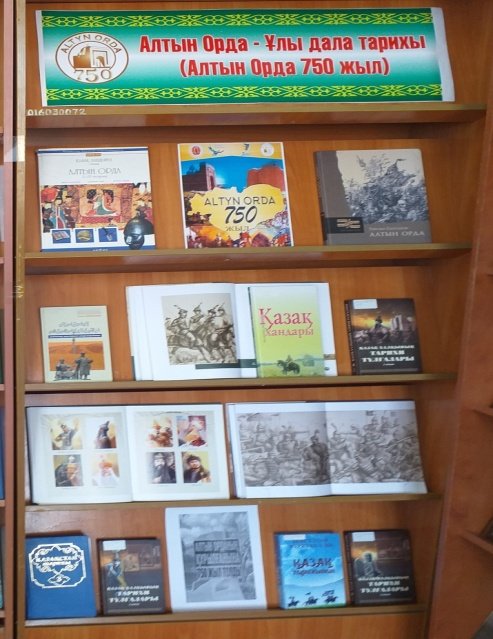 №3 кітапхананың оқу залында Алтын Орданың 750 жылдығына арналған ««Алтын Орда-Ұлы дала тарихы»» атты кітап көрмесі ұйымдастырылды.Көрмеге Алтын Орда мемлекетінің құрылуын, даму тарихын, күйреуін баяндайтын Қайрат Бегалиннің «Алтын Орда хандары», Тұрсын Сұлтановтың «Алтын Орда», «Қазақ хандығының тарихы», Мұхтар Мағауиннің «Қазақ тарихының әліппесі», Бексұлтан Нұржекеұлының «Қазақ тарихынан» атты т. б. кітаптар мен энциклопедиялық анықтамалықтар, жинақтар, мерзімдік басылымдар беттерінен тарихи мағлұматтар қойылып, кітапхана оқырмандарына таныстырылды.Оқырмандарға Алтын Орданың құрылу тарихы, жүргізген ішкі-сыртқы саясаты мен саяси экономикалық даму ерекшеліктері, қоғамдық құрылысы мен оның әлсіреуі туралы түсінік берілді.